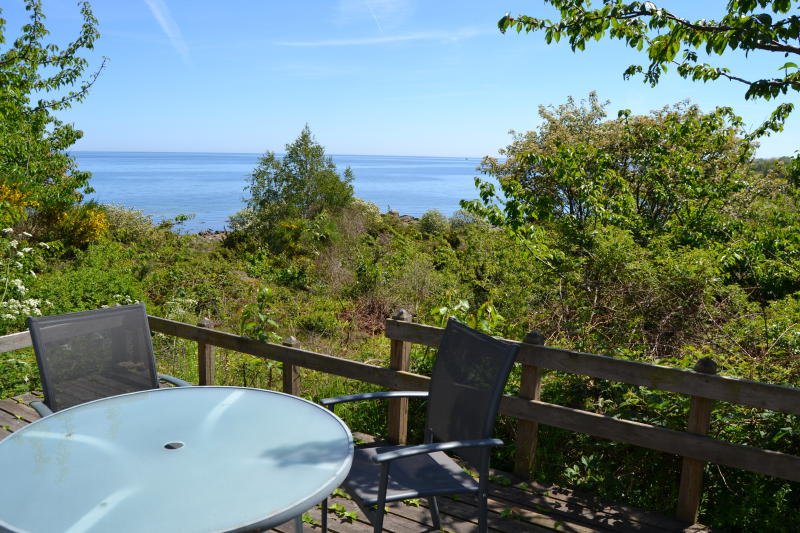 Ferienhaus am Meer auf Bornholm, nah Aarsdale zwischen Nexö und Svaneke, DänemarkDas Haus liegt mit einer der schönsten Ausblicke auf Bornholm gelegen. Vom Wohnzimmer und Terrasse mit Blick auf den schwedischen Hafen. Sie können Fische und schwimmen von den Felsen auf dem Grundstück.