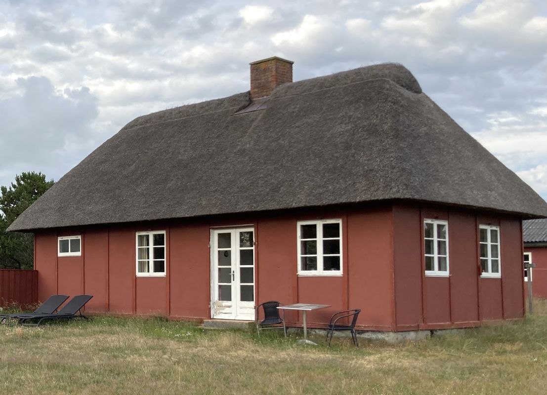 Sommerhaus 50 m von der Nordsee entfernt und große Sauna mit Panoramafenstern.Charmantes kleines Reetdachhaus mit fantastischer Lage auf einem großen Naturgrundstück mit einem kleinen Pinienwald, der Schutz vor dem Westwind bietet.
