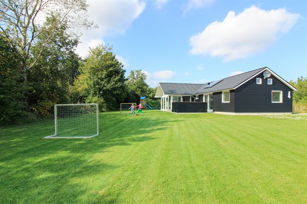 Dieses schöne und geräumige Ferienhaus liegt auf einem großen Grundstück, wo sich die jüngsten Feriengäste so richtig tummeln können. Das Haus liegt in einem kinderfreundlichen Gebiet mit schöner Natur sowie viele Sehenswürdigkeiten und Ausflugszielen. Das Ferienhaus eignet sich für 10 Personen sowie 1 Kleinkind bis zu 3 Jahren. Das Haus hat eine Wohnfläche von 149 m² und wurde 2017 gebaut. Es ist erlaubt 1 Haustier mitzubringen. Es sind eine energiesparende Erdwärmepumpe sowie Solarwärme installiert. Warmwasser-Fußbodenheizung in allen Räumen. Das Ferienhaus liegt auf einem 1663 m² großen Naturgrundstück. Die Entfernung zum Meer beträgt 12 km, zu einem See 3 km, zur nächsten Einkaufsmöglichkeit 600 m und zu einer Golfanlage 7 km. Es stehen 3 Terrassen von insgesamt 66 m², mit Gartenmöbeln und Grill, zur Verfügung. Auf dem Grundstück, das mit Rasen ausgelegt ist finden Sie Schaukel, Sandkasten, Trampolin, Spielturm, Rutsche und Fußballtor. Es ist ein Ladestecker für Elektroautos installiert. Ladestecker Typ 2. Der Hobbyraum ist mit Tischtennis, Billard, Mini-Tischfußball sowie TV mit Nintendo Wii mini ausgestattet. Die Schlafplätze verteilen sich auf 4 Schlafräume, alle mit Doppelbett. Außerdem gibt es 2 Schlafplätze auf Matratzen im offenen Obergeschoss des Hauses. Die Küche enthält u. a. Geschirrspüler, Mikrowelle, Kühlschrank, Tiefkühlgerät mit einer Kapazität von 87 Liter, 4 Keramik-Kochfelder und Umluftofen. An weiterer Ausstattung können 2 Fernseher mit Smart-TV (viele deutsche Fernsehsender via Astra), DVD-Player, Radio mit CD-Player, kostenlose, kabellose Internetverbindung (30/30 Mbit), Waschmaschine, Wäschetrockner, Kinderbett und Kinderhochstuhl erwähnt werden.Rauchen ist nicht zugelassen.