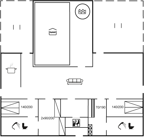 Dieses große Ferienhaus mit Swimmingpool bietet Platz für acht Gäste. Das Haus ist laufen renoviert und bietet einen angenehmen Rahmen für den Aufenthalt – sei es zum Entspannen am Kaminofen im Wohnzimmer oder für ein Bad im Pool. Nach langen Spaziergängen am Meer sorgt die Sauna für Wärme oder der Whirlpool für Entspannung. Dieser befindet sich ebenfalls im Poolbereich, in dem zusätzlich eine Dusche vorhanden ist. Der große Garten bietet sonnige Ecken, die sich gut für eine Tasse Kaffee oder zum Sonnen eignen, während die Kinder auf der Rasenfläche spielen, auf den Schaukeln toben oder in der Sandkiste verweilen. Die Terrasse wird in den Sommermonaten der bevorzugte Ort für die Mahlzeiten sein und lädt zu langen, hellen Sommerabenden ein. Ein Gas- und ein Holzkohlegrill stehen zur Verfügung; Gas für den Gasgrill ist selbst mitzubringen. Das Haus liegt knapp einen Kilometer vom nächsten Sandstrand entfernt und bietet damit reichlich Gelegenheit zum Baden und Spazierengehen. Das Zentrum von Marielyst ist schnell erreichbar, und nach etwa 20 Minuten Autofahrt liegt Nykøbing Falster mit dem Mittelalterzentrum, das Erlebnisse für die ganze Familie bereithält.