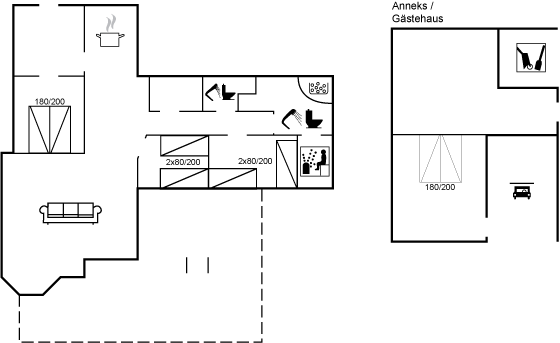 In einem attraktiven Viertel von Marielyst – ganz in der Nähe vom Marktplatz, Zentrum, Wasser, Einkaufsmöglichkeiten und Sehenswürdigkeiten – findest du dieses besonders schöne Ferienhaus mit Whirlpool und Sauna. Das Ferienhaus ist mit einer Luft-Wasser-Wärmepumpe sowie einem Kamin ausgestattet, und es gibt Fußbodenheizung im gesamten Haus und im Gästehaus. Das gemütliche Ferienhaus verfügt über eine offene und helle Küche mit Induktionskochfeld, Kühlschrank mit Gefrierfach und Geschirrspüler. Es gibt zwei Badezimmer mit Fußbodenheizung und Duschnische. Das eine Badezimmer ist zusätzlich mit einem Whirlpool für zwei Personen ausgestattet und bietet Zugang zur großen Sauna des Hauses. Außerdem stehen dir eine Waschmaschine und ein Wäschetrockner zur Verfügung. Das geräumige Wohnzimmer lädt zum Entspannen ein und verfügt über kostenloses WLAN sowie einen Fernseher mit deutschen und dänischen Kanälen. Für die Kleinsten gibt es ein Kinderbett und einen Hochstuhl. Die Schlafplätze des Hauses verteilen sich auf zwei Schlafzimmer mit jeweils zwei Einzelbetten und ein Schlafzimmer mit einem Doppelbett und ein Kinderbett. Darüber hinaus gibt es ein gemütliches Gästehaus mit einem weiteren Doppelbett. Zum Haus gehört eine große Terrasse mit viel Platz für schöne Stunden im Freien – hier kannst du grillen, die Sonne genießen oder auf dem überdachten Bereich Schatten finden. Eine Morgenterrasse im Osten lädt dazu ein, hier den ersten Kaffee des Tages zu genießen. Auf dem großzügigen Grundstück gibt es viel Platz für Ballspiele und andere Aktivitäten im Freien. Für die kleinen Feriengäste gibt es einen Sandkasten und eine Rutsche sowie Schaukel und Spielturm. Ein Carport steht ebenfalls zur Verfügung.