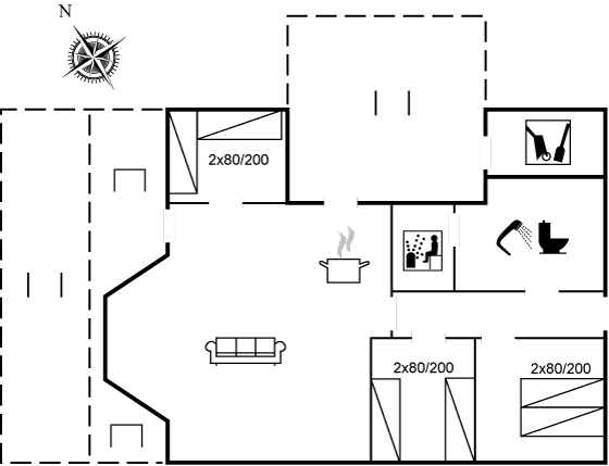 Ein schönes Ferienhaus, auf einem ungestörten Grundstück und in Gehweite zum Leuchtturm ”Rubjerg Knude Fyr”, dem gemütlichen Stadtzentrum und dem schönen Strand gelegen. Hier gibt es eine herrliche Natur, die sich perfekt für Spaziergänge mit dem Hund eignet. Das Ferienhaus ist sowohl für Familien als auch für Paare gut geeignet. Das Ferienhaus eignet sich für 6 Personen sowie 1 Kleinkind bis zu 3 Jahren. Die Ferienunterkunft hat eine Wohnfläche von 79 m² und wurde 1992 gebaut. 2024 wurde die Ferienunterkunft teilweise renoviert. Nur ein kleiner Hund ist erlaubt (Max 15 Kilo). In der Ferienunterkunft ist eine energiesparender Luft zu Luft Wärmepumpe installiert. Die Ferienunterkunft ist mit Waschmaschine ausgestattet. Wäschetrockner. Tiefkühlmöglichkeit mit 30 Liter Nutzinhalt. Es gibt außerdem einen Kaminofen. Für die jüngsten Feriengäste ist 1 Kinderhochstuhl vorhanden. Die Ferienunterkunft liegt auf einem 1399 m² großen Naturgrundstück. Die Entfernung zum Meer beträgt 1200 m. Es steht ein offenes Terrassenareal zur Verfügung. Außerdem gibt es überdachte Terrasse. Geräteraum. Schaukel. Sandkasten. Fußballtor. Es steht ein Grill zur Verfügung. Es ist ein Ladestecker für Elektroautos installiert. Parkplatz auf dem Grundstück. Die Schlafplätze verteilen sich auf 3 Schlafräume. 6 Schlafplätze in Einzelbetten. 2 Schlafplätze auf Matratzen. 2 von diesen Schlafplätzen befinden sich im offenen Obergeschoss. Ferner steht ein Kinderbett zur Verfügung. Die Küche ist mit Kühlschrank ausgestattet. Außerdem gibt es 4 Induktions-Kochzonen, Umluftofen, Mikrowelle sowie Geschirrspüler. Es gibt 1 Badezimmer mit Fußbodenheizung, Duschnische, Badewanne und Toilette. Es steht außerdem eine Sauna zur Verfügung in der man sich so richtig entspannen kann. In der Ferienunterkunft gibt es 1 Fernseher mit Smart-TV. Chromecast. DVD-Player. Mindestens 4 dänische Fernsehsender. 1-3 schwedische Fernsehsender. 1-3 norwegische Fernsehsender. Mindestens 4 deutsche Fernsehsender. 1-3 englische Fernsehsender. Es steht kabellose Internetverbindung zur Verfügung.Rauchen ist nicht zugelassen.