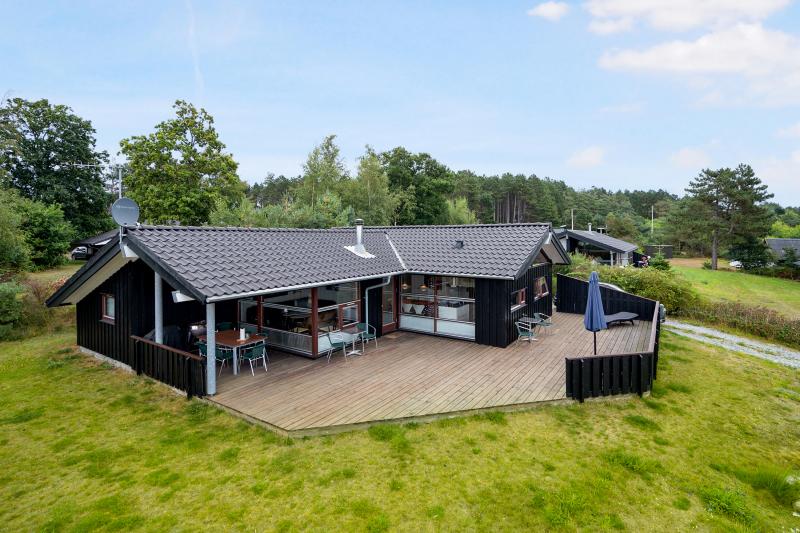 Neues design Sommerhaus - 2 in 1 nähe dem strand am Mols, 8 pers.Architektonisch einzigartiges Ferienhaus mit 110m² und 8 Schlafplätzen, wunderschön gelegen inmitten der Natur mit Waldgebieten in der Nähe, nur 200 m vom flachen Badegewässer und 3 km vom Skødshoved Strand entfernt.