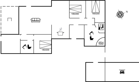 Im Ferienhausgebiet zwischen Saltum Strand und Lille Norge findet man dieses schöne und gepflegte Ferienhaus auf einem schönen Grundstück mit herrlichen Terrassen und vielen gemütlichen Plätzen, an denen man sich aufhalten und einen schönen Rückzugsort finden kann. Das Ferienhaus ist gut eingerichtet und überall von schönem Tageslicht durchflutet. Die 3 Schlafzimmer sind in 2 Bereiche aufgeteilt. In einem Teil des Ferienhauses befindet sich 1 Zimmer und ein Badezimmer mit Duschnische. In dem anderen Teil gibt es 2 Zimmer und Zugang zu einem Badezimmer mit Whirlpool und Sauna. Das Haus liegt in der Nähe eines der besten Badestrände Dänemarks und bietet reichlich Möglichkeiten für Spaziergänge in der Umgebung. Es ist nur eine kurze Autofahrt nach Blokhus oder Løkken mit vielen Geschäften, Restaurants, Cafés usw. Beachvolleyball kann in der Saison von Mitte April bis Ende September genutzt werden.Rauchen ist nicht zugelassen.