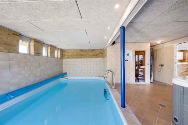 Schönes Ferienhaus aus Stein mit Swimmingpool, Whirlpool und Sauna - am Ende des Weges in ruhiger und naturschöner Umgebung. Das Haus, das 1993 gebaut ist, liegt auf einem Dünengrundstück mit Meeresblick und Bäumen - 300 m vom Strand entfernt. Vom höchsten Punkt der Düne können Sie das Meer sehen. Mehrere herrliche Terrassen mit Gartenmöbeln. Holzboden im Wohnzimmer und im Flur, Teppichboden in den Schlafzimmern, sonst Klinkerboden. Das Haus ist mit einer herrlichen Pool-Abteilung mit Swimmingpool (5,9 x 3,5 x 1,2 m), 4-Pers.-Whirlpool (Standwasser), Dusche und Zutritt zur Sauna des Hauses eingerichtet. Außerdem Badezimmer mit beheiztem Klinkerboden, Duschnische, Waschmaschine und Wäschetrockner. Gästetoilette. Darüber hinaus gut eingerichtete Küche mit Tiefkühlgerät, Mikrowelle, Herd mit Ceran-Feld und Geschirrspüler. Das in versetzter ebene liegende Wohnzimmer enthält Kaminofen, Stereoanlage mit CD-Spieler und TV mit digitalem Satellitenanschluss und DVD-Spieler. Das Haus enthält auch 4 Schlafzimmer; 3 mit Doppelbett und 1 mit 1 Etagenbett und 1 Einzelbett. Von weiterer Ausstattung können kostenlose, kabellose Internetverbindung (eigener Computer ist mitzubringen), Kinderbett und Kinderhochstuhl erwähnt werden. Schaukel auf dem Grundstück. Dieses Ferienhaus in wunderschöner Umgebung, dicht am Wasser und direkt an den Dünen wird zu jeder Jahreszeit den perfekten Rahmen eines wunderschönen Ferienerlebnises bilden. Gute Aktivitätsmöglichkeiten im Gebiet. Nur ca. 5 Min. Fahrt vom Badeort Søndervig entfernt.Rauchen ist nicht zugelassen.