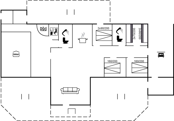 Ferienhaus mit Poolbereich, der mit einem Swimmingpool (20 m²) mit Gegenstromanlage, einem 2-Personen-Whirlpool und einer Sauna ausgestattet ist. Vom Wohnzimmer des Ferienhauses hast du einen Blick auf die Nordsee. Das Wohnzimmer ist unter anderem mit einem Kaminofen, Kabel-TV, DVD-Player und einer Stereoanlage mit CD-Player eingerichtet. Im Wohnzimmer gibt es Holzböden, während in den Schlafzimmern Teppiche verlegt sind. Draußen findest du eine große Terrasse mit Gartenmöbeln. Ein Teil der Terrasse ist überdacht. Das Ferienhaus liegt auf einem großen Natur-/Dünengrundstück, etwa 50 Meter von einem der besten Badestrände Dänemarks entfernt. Auch vom Grundstück des Hauses aus hast du Meerblick.Rauchen ist nicht zugelassen.