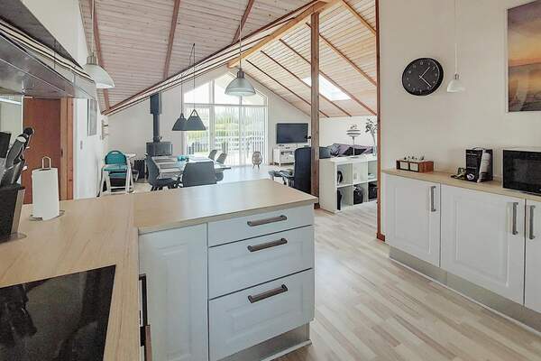 Einladendes Ferienhaus mit gelungener Raumaufteilung, bei der jeder Quadratmeter Wohnfläche perfekt ausgenutzt wurde. Die Ausstattung ist zudem hochwertig und das Mobiliar modern und ansprechend. Im Whirlpool des Hauses kann man sich zu zweit vom Alltagsstress erholen. Die große Rasenfläche eignet sich hervorragend für Ballspiele aller Art. Sie wohnen etwa 800m vom Ringkøbing Fjord mit guten Surfmöglichkeiten entfernt. In Bork Havn gibt es eine Surfschule. Für Golfer liegt ein 18-Loch-Golfplatz in der Umgebung.Keine Vermietung an Jugendgruppen.