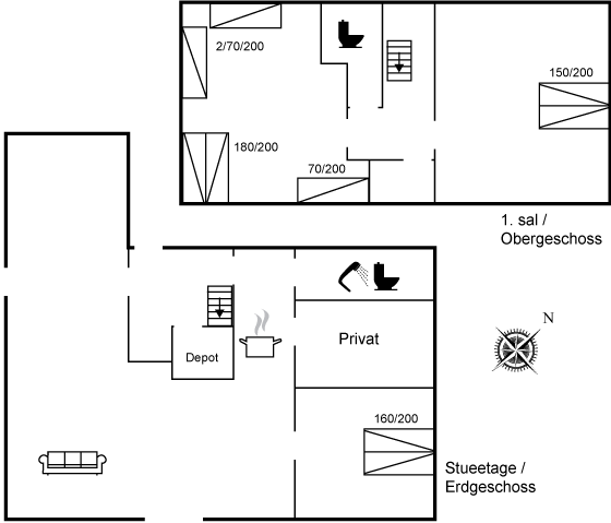 Ein charmantes Ferienhaus im alten Fischerdorf Lendrup Huse, nur etwa 30 m vom Wasser entfernt. Das Haus ist ideal für Gäste, denen Natur wichtiger ist als Komfort. Sowohl vom Haus als auch vom Grundstück aus haben Sie Aussicht auf den Limfjord und den Friedrich-VII.-Kanal, der direkt zu Füßen des Hauses verläuft. Sie können Ihr eigenes mitgebrachtes Boot im Kanal zu Wasser lassen und nach Løgstør fahren. Wenn Sie erfolgreich beim Angeln im Fjord waren, können Sie den großen Gefrierschrank nutzen. Das Haus ist renoviert, wobei der ursprüngliche Stil jedoch erhalten geblieben ist. Der offene Koch-Wohnbereich ist mit einem Fernseher und einem Kamin ausgestattet, damit Sie es sich an einem kühlen Sommerabend oder regnerischen Herbstabend im Warmem gemütlich machen können. Vom Wohnzimmer aus haben Sie Panoramablick aufs Wasser. Die Küche ist unter anderem mit Keramikkochplatten, einem Kühlschrank mit Gefrierfach, einem Gefrierschrank mit 60 l Fassungsvermögen und Spülmaschine ausgestattet. Im Erdgeschoss gibt es ein Schlafzimmer, zwei weitere im 1. Stock. Auf der offenen Terrasse können Sie Ihr Abendessen auf dem Grill zubereiten, lange Sommerabende und wunderschöne Sommeruntergänge über dem Limfjord genießen. Auf dem großen Grundstück stehen viele Obstbäume, an denen Sie gern Obst für den eigenen Bedarf pflücken können.Rauchen ist nicht zugelassen.