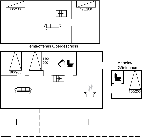 Im beliebten Ferienhausgebiet Teglgården in Hejlsminde liegt dieses komplett renovierte Ferienhaus, das dir sowohl vom Haus als auch vom Grundstück aus einen fantastischen Meerblick bietet. Das Herz des Hauses ist der große und helle Wohn-Küchenbereich, in dem breite Fensterfronten viel Licht hereinlassen und ein offenes Raumgefühl schaffen. Durch die großen Schiebetüren gelangst du direkt auf die Terrasse – das vermittelt ein wunderbares Gefühl, dass Innen- und Außenbereich miteinander verschmelzen. Im ersten Stock gibt es einen kleinen Aufenthaltsraum sowie ein Dachfenster, das sich öffnen lässt, sodass du den Blick auf den Kleinen Belt und die Umgebung genießen kannst. Das Gästehaus bietet ein Doppelbett und ein eigenes WC mit Waschbecken, was es sowohl für Jüngere als auch Ältere geeignet macht. Das gesamte Haus wurde in einem modernen, exklusiven Stil komplett renoviert und ist mit einer Wärmepumpe sowie einem Pelletofen ausgestattet, die im Winter für Wärme und im Sommer für angenehme Klimatisierung sorgen. Das Leben im Freien ist hier etwas ganz Besonderes. Auf der großen Holzterrasse findest du einen gemütlichen, überdachten Loungebereich mit Gartenmöbeln und einer Hängeschaukel, auf der du die Abende genießen kannst. Am Gästehaus gibt es eine Außendusche – perfekt nach einem Tag am Strand.Rauchen ist nicht zugelassen.