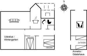 Mit Meeresblick sowohl vom Haus als auch vom Grundstück finden Sie dieses gemütlich eingerichtete Ferienhaus - in einem schönen und familienfreundlichen Feriengebiet. Übrigens: Die 2 Schlafplätze in Einzelbetten finden Sie in einem Gästehaus auf dem Grundstück.Rauchen ist nicht zugelassen.