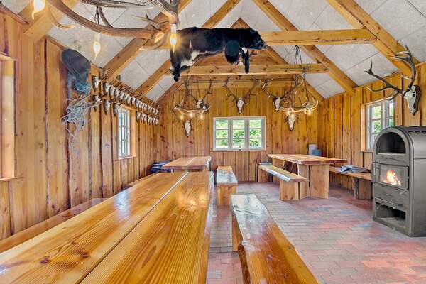 Auf dem großen Grundstück am Haus befindet sich ein eigener See, in dem Sie angeln dürfen (bitte eigene Angelausrüstung mitbringen). Am See steht eine rustikale gemütliche Jagdhütte. Hier können Sie Ihr Abendessen grillen und für die ganze Familie servieren. In einer schön abgeschirmten Ecke können Sie im aufgewärmten Wasser des Badezubers im Freien entspannen.