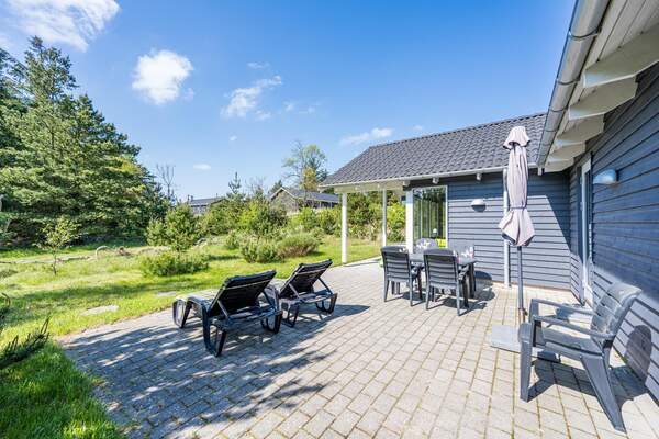 Mitten in der schönen Küstenlandschaft von Nymindegab steht dieses ansprechende Ferienhaus mit Sauna und Whirlpool in einem der beiden Bäder. Liegt auf einem ruhigen Naturgrundstück umgeben von schützenden Kiefern. Eine reine Idylle im Grünen. Für den Aufenthalt im Freien stehen mehrere Terrassenflächen bereit. Innen heller, offener Küchen-/Wohnbereich mit Kaminofen, der Wärme und Gemütlichkeit verbreitet , und mit schönem Ausblick in die Umgebung. Angenehme Fußbodenheizung im Haus. Alle Zimmer sind hell und geräumig. Darüber hinaus gibt es einen Aktivitätsraum mit Billard, Darts, Tischtennis und PlayStation 3 (Spiele müssen Sie selbst mitbringen). So ist auch an weniger sonnigen Tagen für den Freizeitspaß gesorgt. Das Ferienhaus ist zudem rollstuhlfreundlich.Die Endreinigung ist im Mietpreis enthalten!