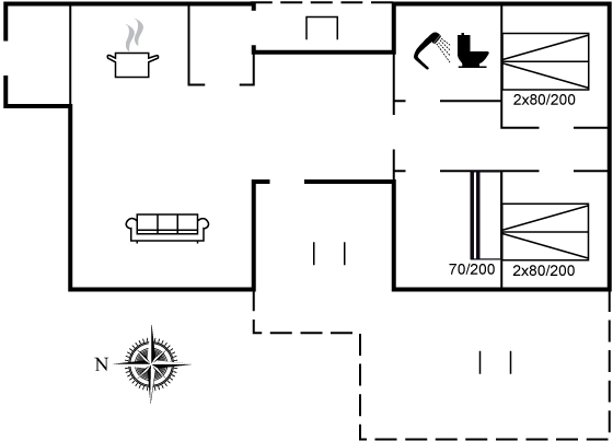 Träumt ihr davon, euren Urlaub in einem stilvoll und gemütlich eingerichteten Ferienhaus zu verbringen, wo ihr den Alltagsstress ganz hinter euch lassen könnt? Dann ist dieses Ferienhaus die ganz richtige Wahl und die Ruhe stellt sich ein, sobald ihr die Schwelle zu diesem schönen Haus überschreitet. Das Haus liegt in der Nähe der Nordsee und dem Ringkøbing Fjord, und die große Holzterrasse mit Außensauna und Außendusche ist von hohen, schönen Bäumen umgeben, die sowohl Windschutz als auch Privatsphäre bieten. Im Inneren erwartet euch eine geschmackvolle und stilvolle Einrichtung mit einer entspannten, typisch dänischen Ferienhausatmosphäre. Die Küche ist gut ausgestattet und bietet genügend Platz, damit mehrere gemeinsam kochen und sich dabei unterhalten können. Der Küchenbereich ist offen mit dem gemütlichen Wohnzimmer verbunden. Hier findet ihr eine große Couch, auf der ihr bei einem guten Buch oder einem Film entspannen könnt. Im Essbereich könnt ihr den Kaminofen anzünden und durch die bodentiefen Fenster den herrlichen Blick in die Natur genießen – fast, als säßet ihr mitten im Grünen. Draußen auf den schönen Holzterrassen könnt ihr die Natur in vollen Zügen genießen und euch in der Außensauna oder unter der erfrischenden Außendusche verwöhnen. Das ist ein ganz besonderes Erlebnis – im Sommer wie im Winter. Das Grundstück ist nach dem Prinzip „Wild mit Willen“ gestaltet und bietet reichlich Platz zum Spielen, Toben und Entdecken – für Kinder, Hunde und alle Junggebliebene. Es gibt mehrere völlig ungestört gelegene Terrassen und sonnige Ecken, in denen ihr die Ruhe genießen könnt. Mit der Blåbjerg Plantage direkt hinter dem Haus habt ihr zahlreiche Möglichkeiten, die vielen Wander- und Mountainbikestrecken zu nutzen. Außerdem sind der Strand bei Gammelgab und die Nordsee nur eine kurze und wirklich schöne Radtour entfernt.