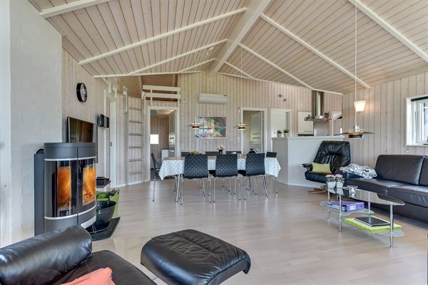 Dieses besonders schöne und geräumige Ferienhaus liegt auf einem großen Grundstück mit Platz für Ballspiele und andere Aktivitäten im Freien. Zum Haus gehört eine schöne und zum Teil überdachte Terrasse mit Gartenmöbeln. Die Schlafplätze verteilen sich auf 3 Zimmer, ein offenes Obergeschoss und ein Alkoven im Wohnzimmer.Rauchen ist nicht zugelassen.