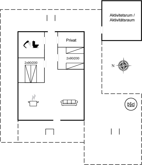 Gemütliches Ferienhaus auf Fanø mit schöner Wohnküche, von der man direkten Zugang zur teilweise überdachten, geräumigen Terrasse hat. Das Haus wurde 2025 teilweise renoviert und verfügt über ein ganz neues und besonders schönes Badezimmer. An die große Terrasse angrenzend findest du einen separaten Aktivitätsraum sowie Zugang zu einm Außen-Whirlpool und zur Außendusche.Rauchen ist nicht zugelassen.