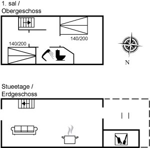 Ein schönes und gemütlich eingerichtetes Ferienhaus. Der 1. Stock ist mit zwei Schlafräumen, Badezimmer und eine Leiter, die in das offene Obergeschoss führt, eingerichtet.Terrasse gegen Westen. Gemeinsame Sandbox und Schaukel verfügbar.Rauchen ist nicht zugelassen.