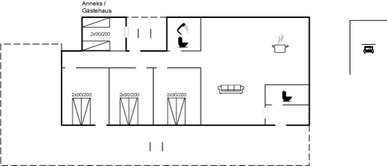Modern eingerichtetes Ferienhaus mit sehr guter Lage nahe dem Sandstrand südlich von Snogebæk in einer ruhigen und ungestörten Gegend. Das große Grundstück ist von Bäumen umgeben, sodass du dich fühlst, als wärst du in deiner ganz eigenen Welt. Die große Holzterrasse, die einen Teil des Hauses umgibt, bietet dir perfekte Möglichkeiten, die Sonne, die Familie und die stille Natur zu genießen. Das Haus ist mit einer modernen Küchenecke in einem hellen und einladenden Interieur eingerichtet. Im Haupthaus findest du drei Schlafzimmer, während sich das vierte Schlafzimmer im angebauten Gästehaus mit eigenem Eingang und Terrassenbereich befindet, der sowohl vom Gästehaus als auch vom Haus betreten werden kann. Snogebæk bietet dir viele gute Möglichkeiten – Supermarkt, Cafés, Restaurants und eine Räucherei. In den Spezialgeschäften des kleinen Fischerortes kannst du sowohl Bio-Eis als auch handgemachte Schokoladen in hoher Qualität bekommen.